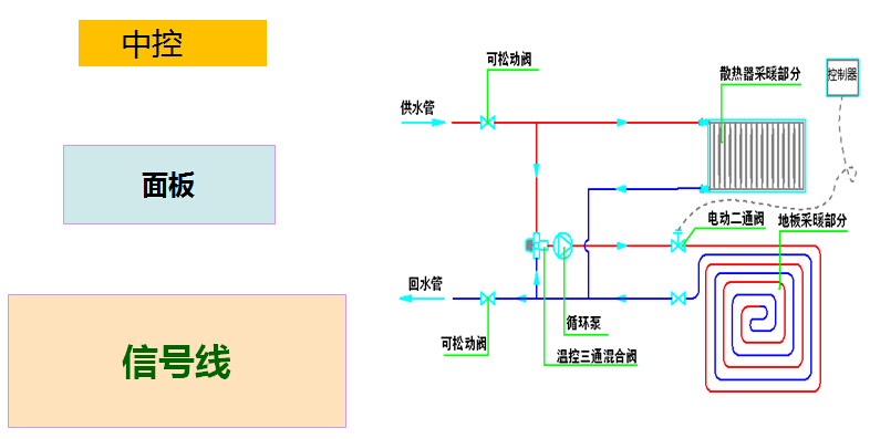 蓄能水箱、水力分配、循環(huán)泵、電動閥、水路布置形式(采用同程、異程還是分級分水形式)。
