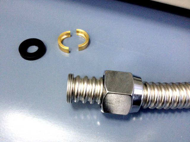 4、成形前部分套入螺母,成型后部分卡上銅箍和皮墊,如此,即完成了波紋管的選材及安裝,靈活省時省力,也相對經久耐用,正在成為越來越多家庭的選擇。