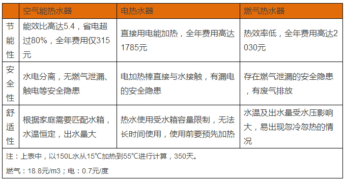 目前大多數(shù)家庭對熱水的使用需求都比較大,除了洗澡以外,洗碗、洗菜都需要用到熱水,尤其是冬天。為此熱水使用費用是選購熱水器重要的考慮因素之一。以華源空氣能熱水器為例,從表中可以看出,使用空氣能熱水器全年費用僅315元,這將為家庭節(jié)省很大一筆開支。